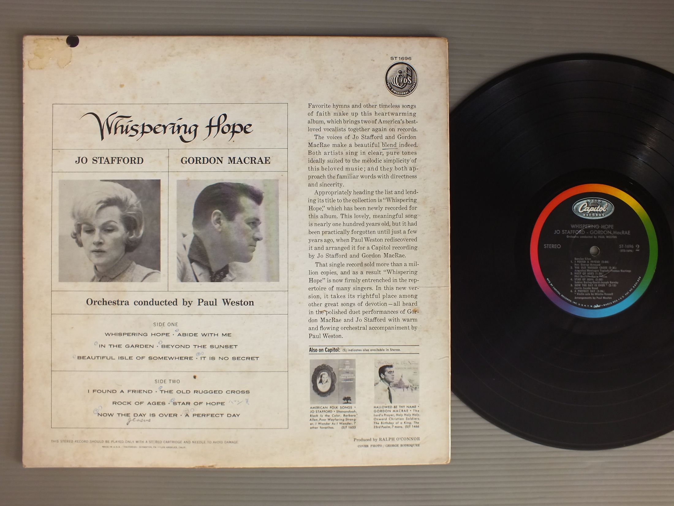 JO STFFORD & GORDON MAC RAE/WHISPERING HOPE AT1696 製造国:米国盤 / Media:LP外観:VG+盤の状態:VG+ 価格(税込):¥3,850 送料 7inch:定形外郵便 360円~LP:定形外郵便 660円~送料は、注文の最終画面で確認頂けます。 > > JO STFFORD & GORDON MAC RAE/WHISPERING HOPE 外観 (VG+)特記事項:背スレやヘリスレ、角スレ有り。ジャケ表面にシミやよごれ多め。裏ジャケにステッカーや書き込み有り。外観VG+の共通説明:ダメージやや有り。シミ、ヨゴレ、スレなど多少~やや多め。 盤の状態 (VG+)特記事項:薄いスリキズ・細かいスレやや有り。全体的には軽微なものが中心です。音自体はしっかりクリアーに鳴っているようでした。通して試聴しています。針飛びなどは有りませんでしたが装置によっては微妙な箇所もありますのでノークレーム・ノーリターンでお願い致します。神経質な方はご遠慮ください。盤VG+の共通説明:盤面にスリキズが多少~やや有り、音に出そうなものも多少ある。 Tweet それぞれの画像をクリックすると、大きい写真が見られます こちらの商品もお勧めです 3,850円 DELLA REESE / AND THAT REMINDS ME 3,300円 GOGI GRANT / SUDDENLY THERE`S
