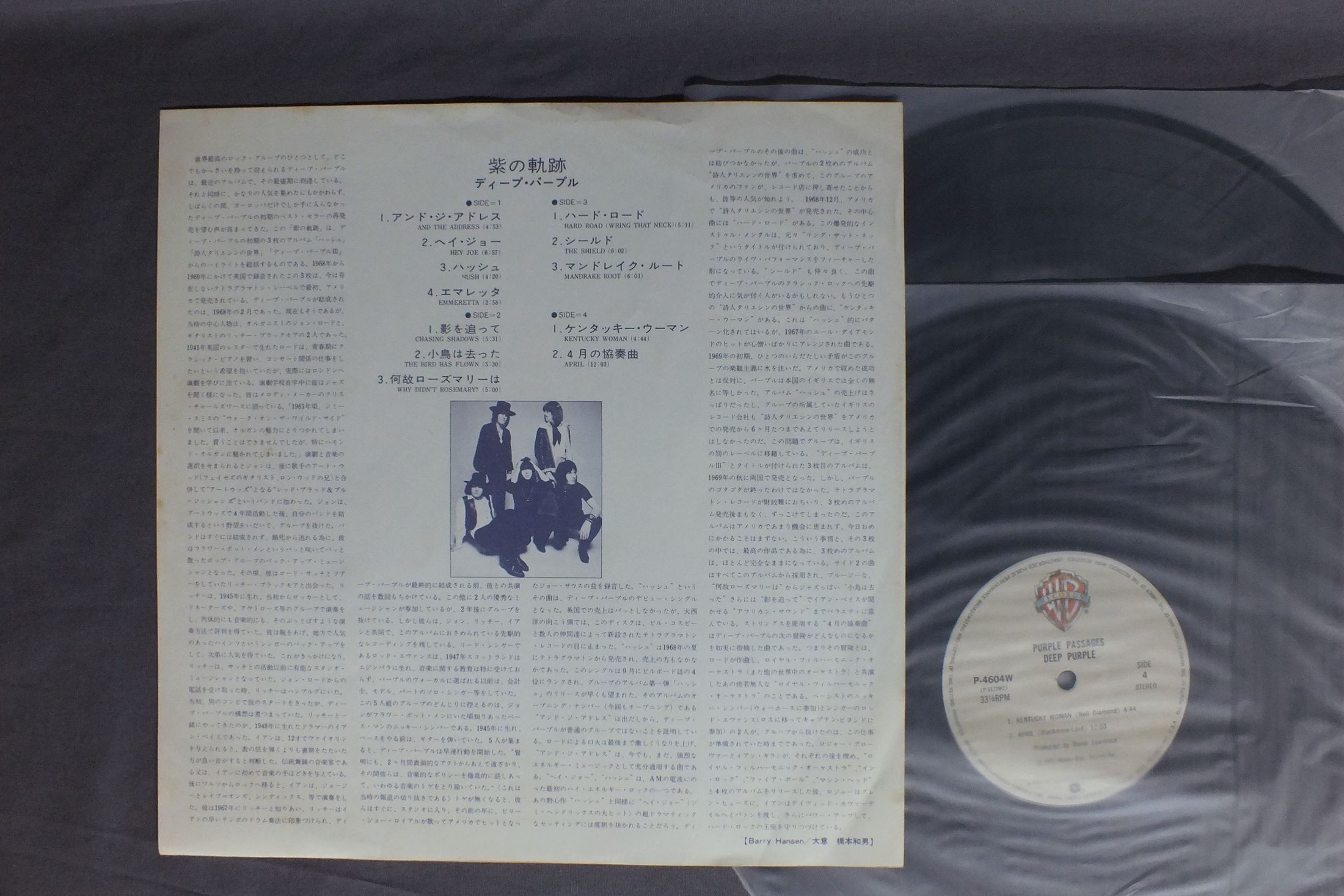 DEEP PURPLEディープ・パープル/PURPLE PASSAGES紫の軌跡 P4603-4W 製造国:日本盤 / Media:LP外観:VG盤の状態:EX 価格(税込):¥1,210 送料 7inch:定形外郵便 360円~LP:定形外郵便 660円~送料は、注文の最終画面で確認頂けます。 > > DEEP PURPLE/PURPLE PASSAGES 外観 (VG)特記事項:カードにシミありジャケ表面にスレやスリキズ有り。ジャケット表裏にリングスレあり。外観VGの共通説明:ダメージが見るからに多い。 盤の状態 (EX)特記事項:薄いスリキズ・スレ軽くある感じ。軽微なものが中心です。盤EXの共通説明:盤面のスリキズが薄いものが少し~軽度 音に出そうなものは無いように見える(軽微なソフトティック音は除く)。 Tweet それぞれの画像をクリックすると、大きい写真が見られます こちらの商品もお勧めです 1,980円 DEEP PURRLEディープ・パープル / LAST CONCERT IN JAPANラスト・コンサート・イン・ジャパン