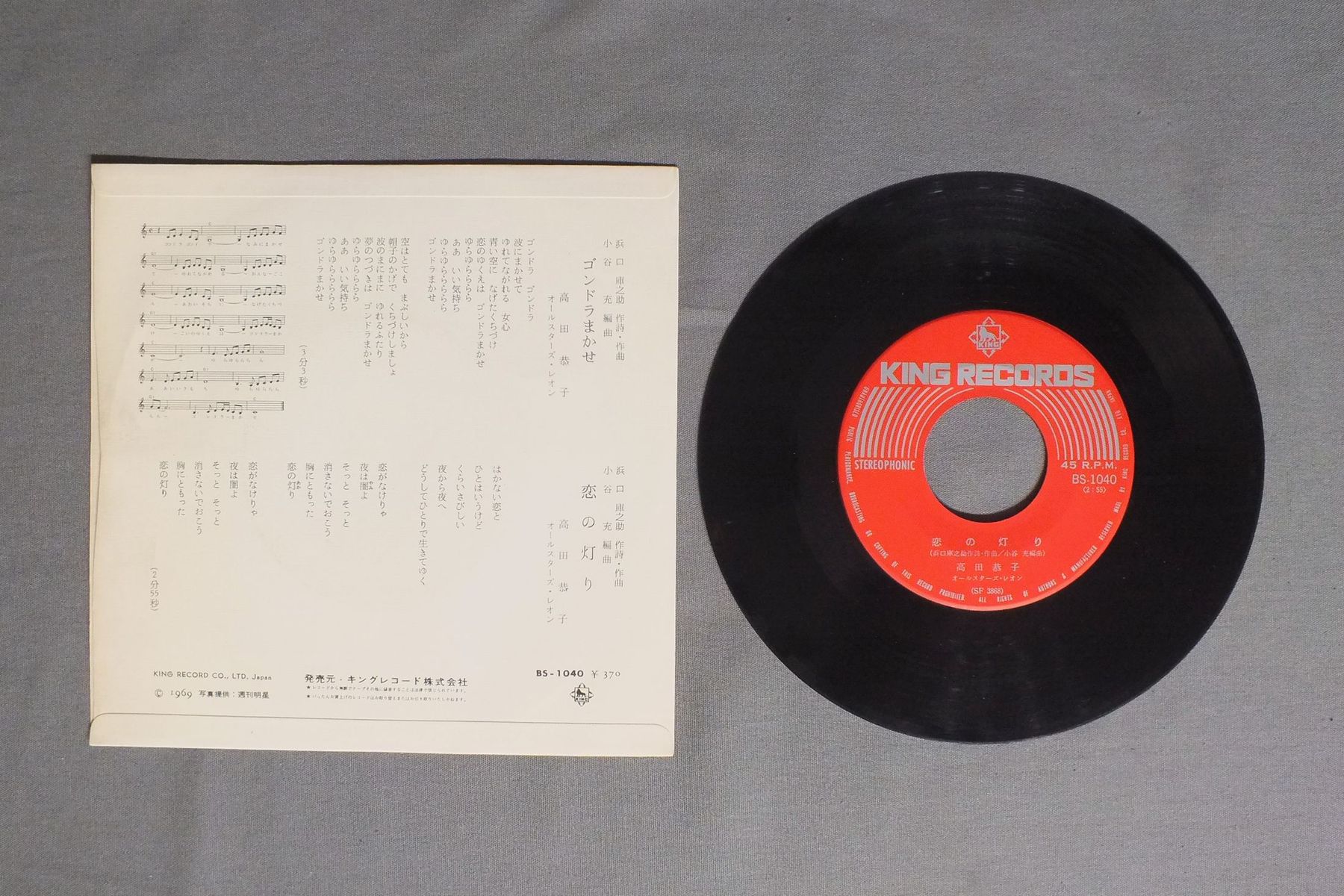 TAKADA KYOUKO高田恭子/GONDORA MAKASEゴンドラまかせ BS-1040 製造国:日本盤 / Media:7inch外観:EX-盤の状態:VG+ 価格(税込):¥550 送料 7inch:定形外郵便 360円~LP:定形外郵便 660円~送料は、注文の最終画面で確認頂けます。 レコード検索 > JAZZ > TAKADA KYOUKO/GONDORA MAKASE 外観 (EX-)特記事項:ジャケ表面にシミやよごれ多少有り。少しリングスレあり。外観EX-の共通説明:ダメージ軽度~多少。 中古品としては普通の状態。シミ、ヨゴレ、スレなど軽く~多少。 盤の状態 (VG+)特記事項:薄いスリキズ・細かいスレやや有り。全体的には軽微なものが中心です。盤VG+の共通説明:盤面にスリキズが多少~やや有り、音に出そうなものも多少ある。 Tweet それぞれの画像をクリックすると、大きい写真が見られます こちらの商品もお勧めです 990円 CANDIESキャンディーズ / THE BEST