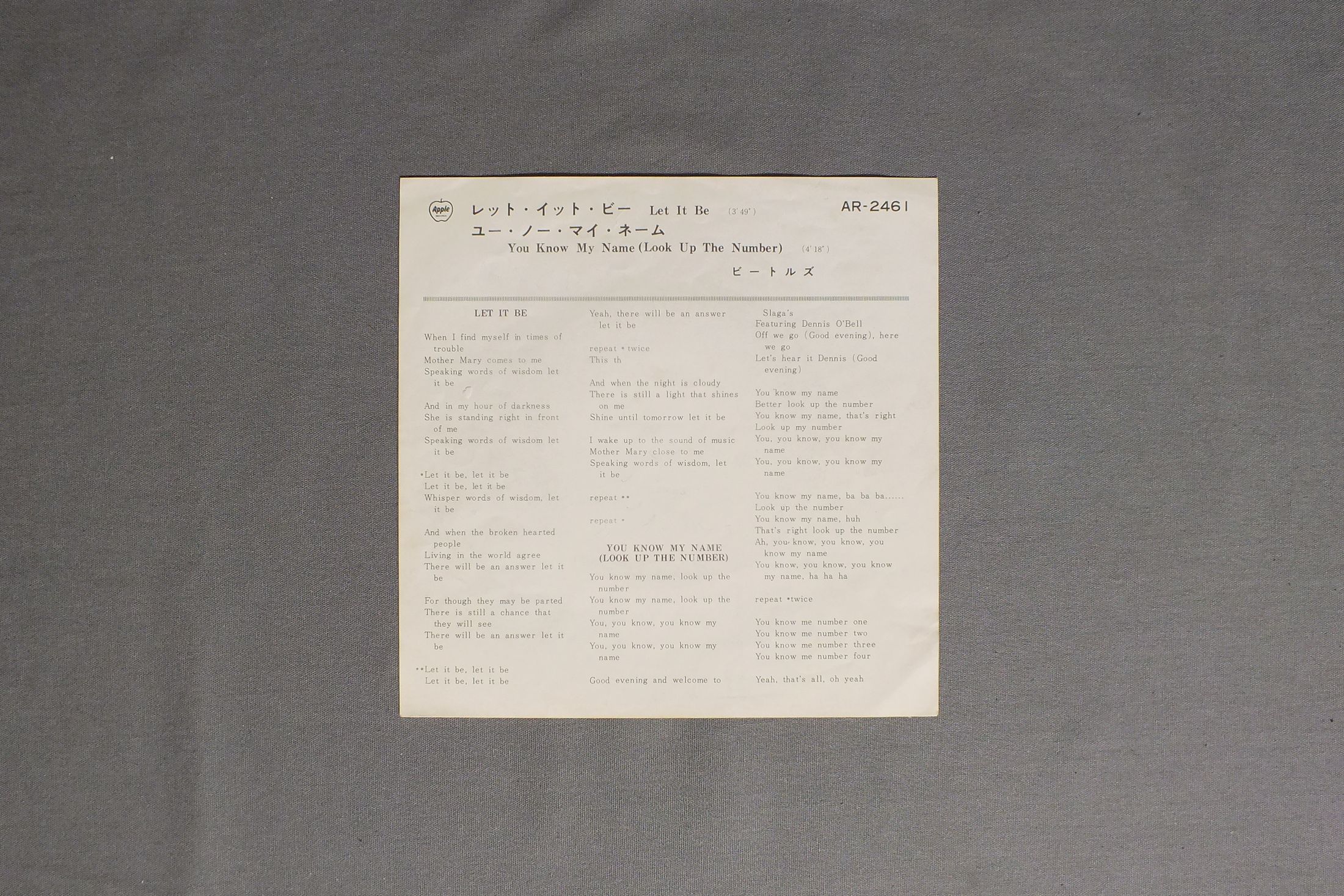 BEATLESビートルズ/LET IT BEレット・イット・ビー AR-2461 製造国:日本盤 / Media:7inch外観:EX-盤の状態:VG+ 価格(税込):¥880 送料 7inch:定形外郵便 360円~LP:定形外郵便 660円~送料は、注文の最終画面で確認頂けます。 レコード検索 > J-POP > BEATLES/LET IT BE 外観 (EX-)特記事項:ジャケ表面にシミやよごれ多少有り。歌詞カードに書き込みあり。外観EX-の共通説明:ダメージ軽度~多少。 中古品としては普通の状態。シミ、ヨゴレ、スレなど軽く~多少。 盤の状態 (VG+)特記事項:薄いスリキズ・細かいスレやや有り。全体的には軽微なものが中心です。盤VG+の共通説明:盤面にスリキズが多少~やや有り、音に出そうなものも多少ある。 Tweet それぞれの画像をクリックすると、大きい写真が見られます こちらの商品もお勧めです 3,850円 BEATLES / LIVE FROM GERMANY 5,500円 BEATLES / OUTAKES 1 5,500円 BEATLES / NEXT-TO-LAST RECORDING SESSION 2,200円 JOHN LENNON & YOKO ONO / TWO VIRGINS REPRODUCTION 8,800円 BEATLES / OUTAKES 2 5,500円 BEATLES / CHRISTMAS COLLECTION 1963-1969 3,300円 JOHN & YOKO / PLASTIC ONO BAND / SOMETIME IN NEW YORK CITY 4,400円 BEATLES / PEACE OF MIND
