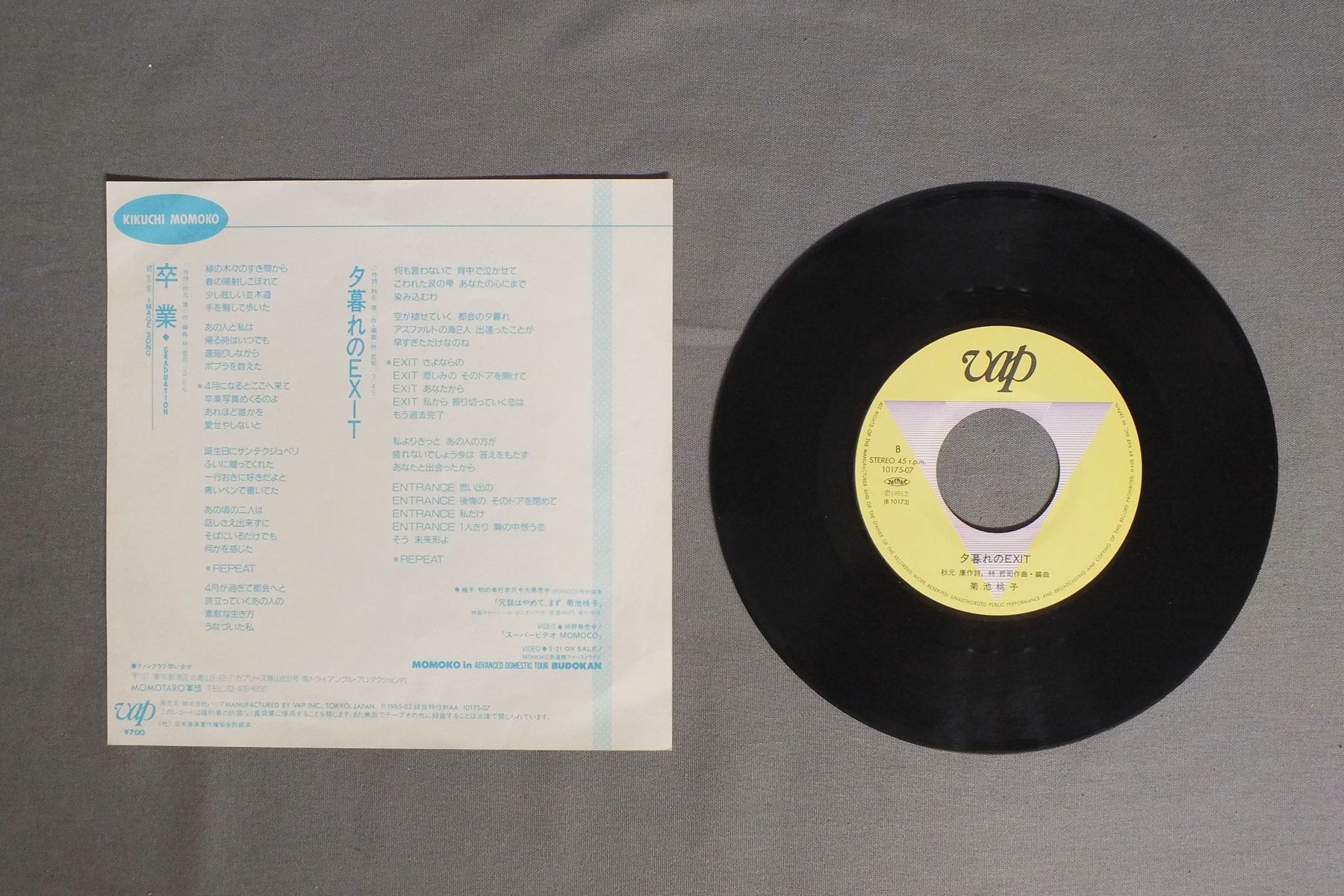 KIKUCHI MOMOKO菊池桃子/GRADUATION卒業 10175-07 製造国:日本盤 / Media:7inch外観:EX-盤の状態:EX 価格(税込):¥550 送料 7inch:定形外郵便 360円~LP:定形外郵便 660円~送料は、注文の最終画面で確認頂けます。 レコード検索 > 1980s–90s > KIKUCHI MOMOKO/GRADUATION 外観 (EX-)特記事項:ヨレシワ多少あり。外観EX-の共通説明:ダメージ軽度~多少。 中古品としては普通の状態。シミ、ヨゴレ、スレなど軽く~多少。 盤の状態 (EX)特記事項:薄いスリキズ・スレ少しある感じ。盤EXの共通説明:盤面のスリキズが薄いものが少し~軽度 音に出そうなものは無いように見える(軽微なソフトティック音は除く)。 Tweet それぞれの画像をクリックすると、大きい写真が見られます こちらの商品もお勧めです 990円 CANDIESキャンディーズ / THE BEST