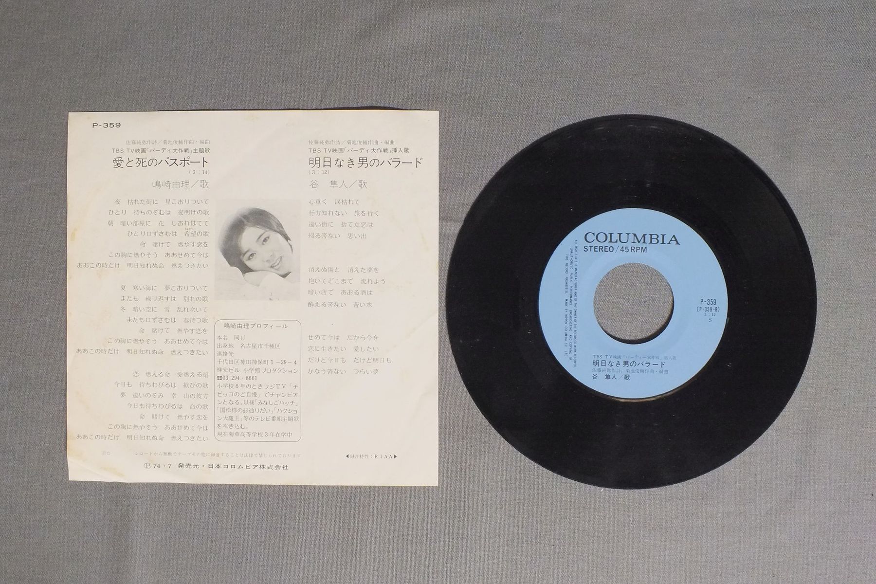 SHIMAZAKI YURI嶋崎由理/AI TO SHI NO PASSPORTTVバーディ大作戦主題曲 愛と死のパスポート P-359 製造国:日本盤 / Media:7inch外観:EX-盤の状態:EX 価格(税込):¥880 送料 7inch:定形外郵便 360円~LP:定形外郵便 660円~送料は、注文の最終画面で確認頂けます。 レコード検索 > JAZZ > SHIMAZAKI YURI/AI TO SHI NO PASSPORT 外観 (EX-)特記事項:ジャケ表面にシミやよごれ多少有り。シワヨレ多少。外観EX-の共通説明:ダメージ軽度~多少。 中古品としては普通の状態。シミ、ヨゴレ、スレなど軽く~多少。 盤の状態 (EX)特記事項:薄いスリキズ・スレ軽くある感じ。軽くプチ出そうなところは少しだけで、ほとんどが軽微なものの様子です。盤EXの共通説明:盤面のスリキズが薄いものが少し~軽度 音に出そうなものは無いように見える(軽微なソフトティック音は除く)。 Tweet それぞれの画像をクリックすると、大きい写真が見られます こちらの商品もお勧めです 990円 CANDIESキャンディーズ / THE BEST