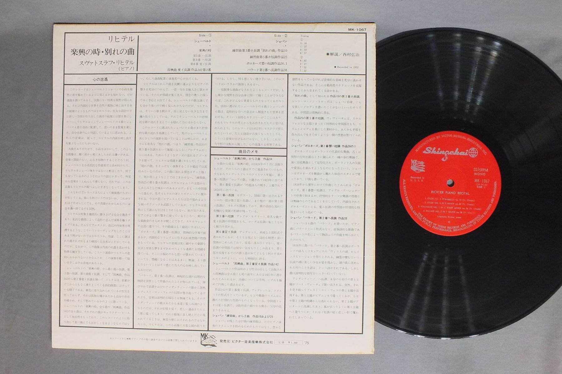 SVIATOSLAV RICHTERスヴァトスラフ・リヒテル/RICHTER PIANO RECITALリヒテル - ピアノ・リサイタル MK-1067 製造国:日本盤 / Media:LP外観:VG+盤の状態:EX 価格(税込):¥990 送料 7inch:定形外郵便 360円~LP:定形外郵便 660円~送料は、注文の最終画面で確認頂けます。 > > SVIATOSLAV RICHTER/RICHTER PIANO RECITAL 外観 (VG+)特記事項:ジャケ表面にシミやよごれ多少有り。外観VG+の共通説明:ダメージやや有り。シミ、ヨゴレ、スレなど多少~やや多め。 盤の状態 (EX)特記事項:薄いスリキズ・スレ軽くある感じ。軽微なものが中心です。盤EXの共通説明:盤面のスリキズが薄いものが少し~軽度 音に出そうなものは無いように見える(軽微なソフトティック音は除く)。 Tweet それぞれの画像をクリックすると、大きい写真が見られます こちらの商品もお勧めです 990円 ASHKENAZYアシュケナージ / BEETHOVEN - PIANO SONATA NO.1ベートーヴェン - ピアノソナタ第1番 1,540円 MAURIZIO POLLINIポリーニ / CHOPIN - POLONAISESショパン - ポロネーズ 990円 BARENBOIM - ENGLISH CHAMBER ORCHESTRAバレンボイム - イギリス室内管弦楽団 / MOZART - PIANO CONCERTOS NOS.20&26モーツァルト - ピアノ協奏曲第20番26番 990円 GARRICK OHLSSONギャリック・オールソン / CHOPIN - POLONAISESショパン - ポロネーズ 1,100円 ASHKENAZYアシュケナージ / CHOPIN - PIANO WORKSショパン - 夜想曲 990円 WEISSENBERGワイセンベルク / BACH - PARTITAS VOL.2バッハ - パルティータ第2番5番6番 990円 KARL RICHTERカール・リヒター / BACH - TOCCATA AND FUGUEバッハ - トッカータとフーガ 990円 CZIFFRAシフラ / LISZT RECITALリスト リサイタル