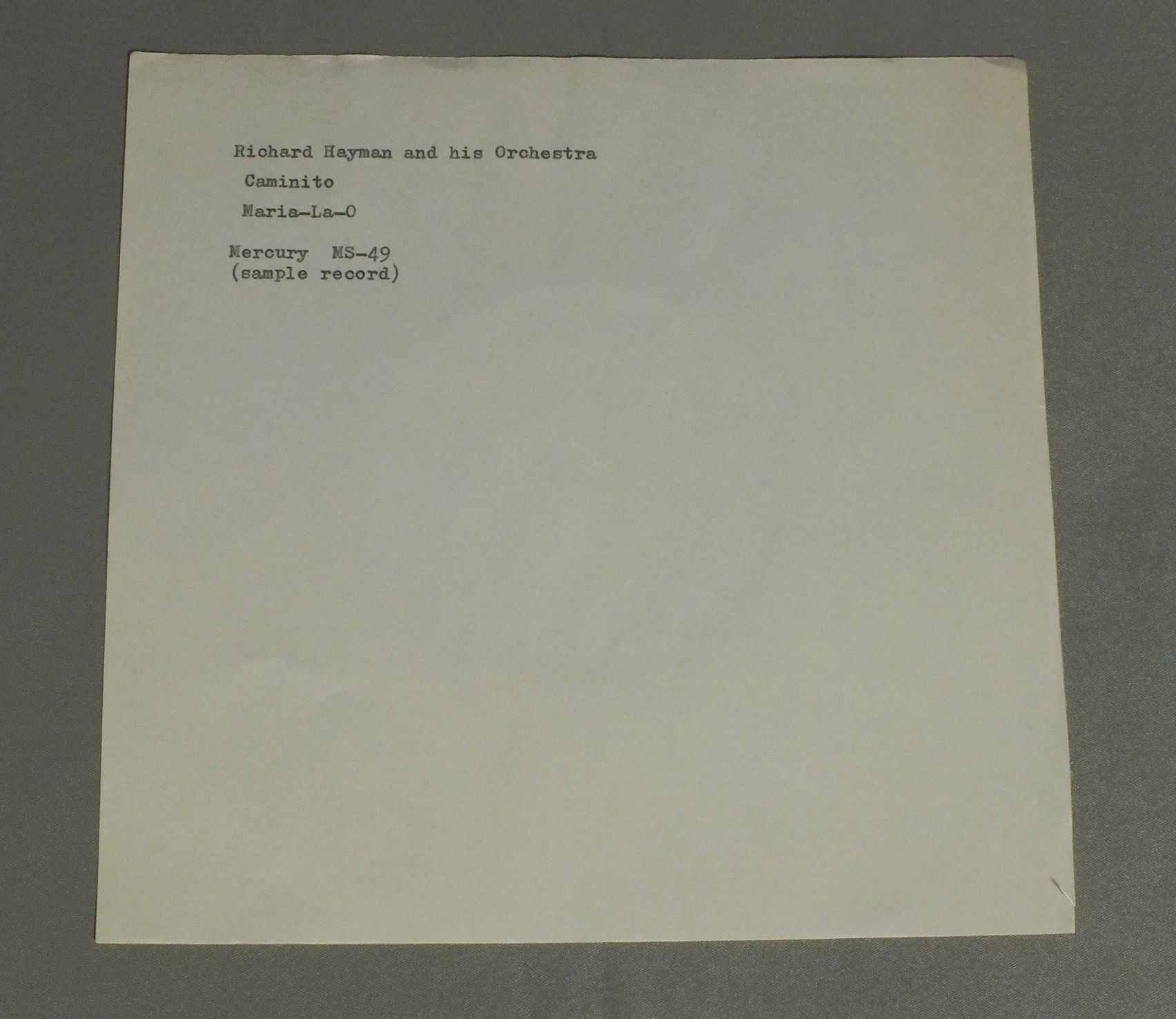 RICHARD HAYMAN/CAMINITO MS49
