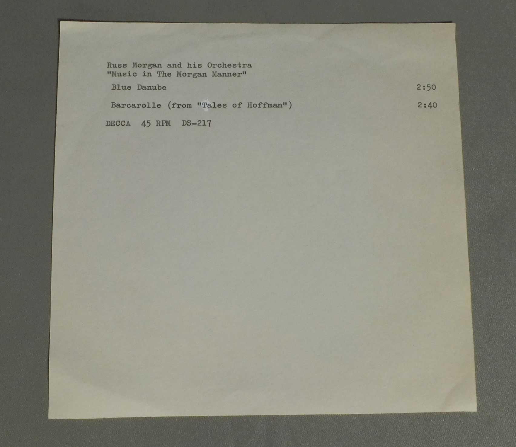 RUSS MORGAN/BLUE DANUBE DS217
