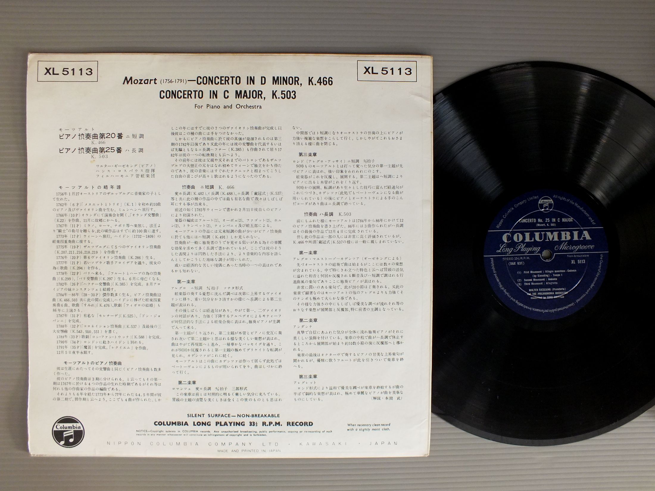 GIESEKING-HANS ROSBAUD/MOZART-CONC.. K466-CONC.. K503 XL5113
