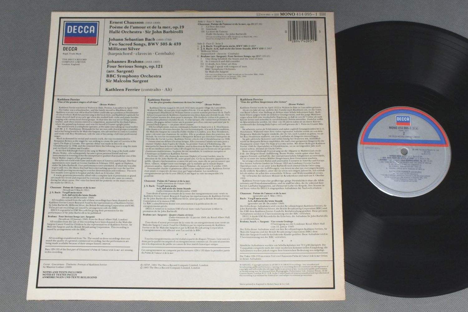 FERRIER/CHAUSSON・J S BACH・BRAHMS 414 095-1