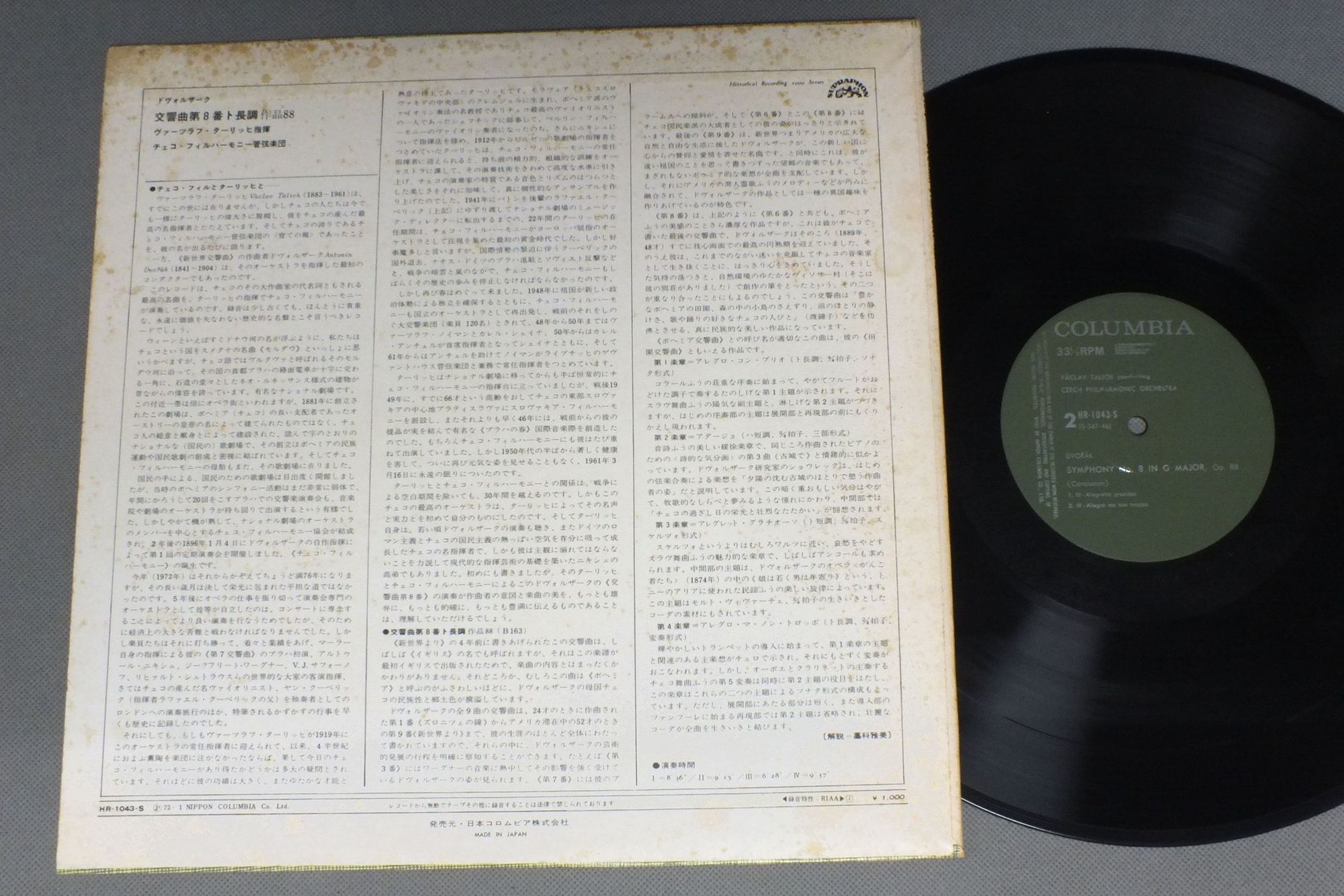 TALICH - CZECH PHILHARMONIC ORCH./DVORAK - SYMPHONY No8 HR1043S